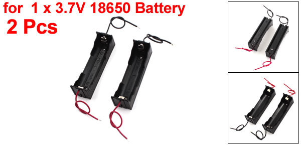 2Pcs Black Plastic 2-Wire 1 x 3.7V 18650 Battery Holder Storage Case