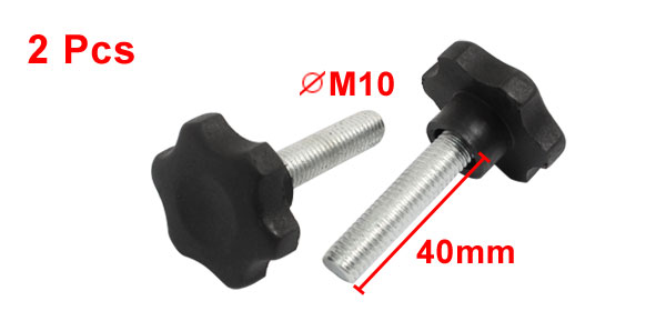 2pcs Black Plastic 40mm Head Diameter Star Clamping Knobs M10 x 40mm