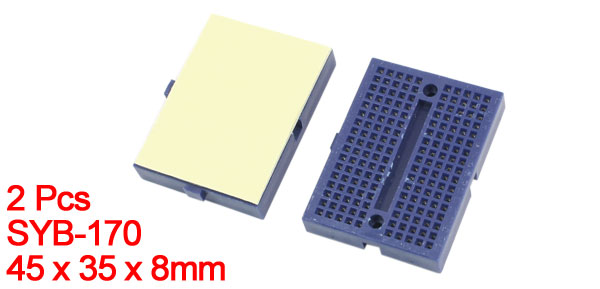 Product Name Solderless Breadboard Model SYB-170 Color Blue Size 45 x 35 x 8mm / 1.8" x 1.4" x 0.3" (L*W*T) Main Material Plastic, Electronic Components Connector Aquantity 170 Pcs Net Weight 30g Package Content 2 x Solderless Breadboard - Reviews