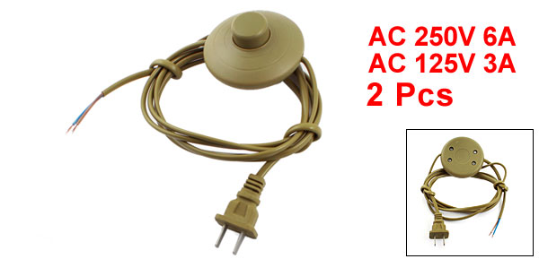 2Pcs Brown Round AC125V 3A AC250V 6A US Plug Step On Switch 1.8M