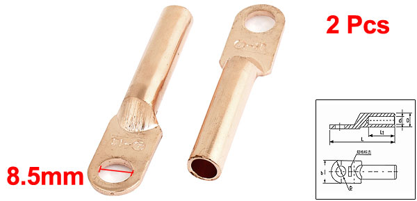 2Pcs Cable Connector Crimping Type Copper Terminals 0.33" Tube Hole Dia