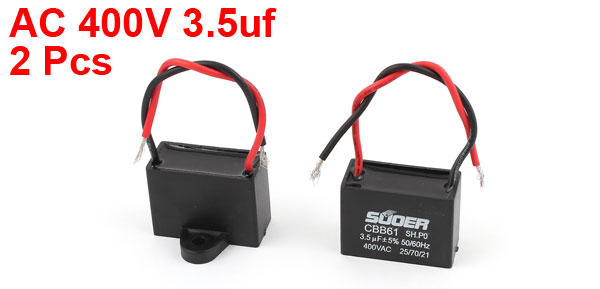 2Pcs CBB61 AC 400V 3.5uf 2 Wire Ceiling Fan Motor Running Capacitor