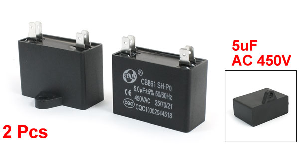 2Pcs CBB61 AC450V 5uf 5% 4 Soldering Pin Air Conditioner Running Motor Capacitor