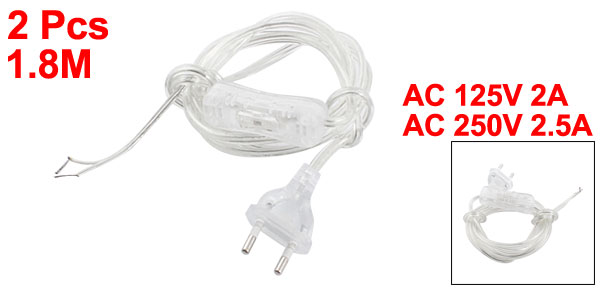 2Pcs Clear EU Plug Locking Power Cord Button Switch 1.8M AC250V 2.5A AC125V 2A