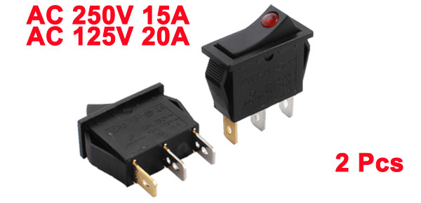 Product Name Rocker Switch Contact Type SPST Terminals 3 Pins Position 2(ON-OFF) Light Color Red Light Voltage 110V/220V AC Rated Voltage AC 250V 15A