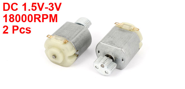 Product Name Micro Motor Voltage DC 1.5V-3V Speed 18000 RPM Body Size 25 x 20 x 15mm/ 1" x 0.8" x 0.59"(L*W*H) Shaft Diameter 2mm Shaft Length 8mm/ 0.31" Main Color Silver Tone Material Metal, Electronic Parts Weight 48g Package 2 x Micro Motor - Reviews