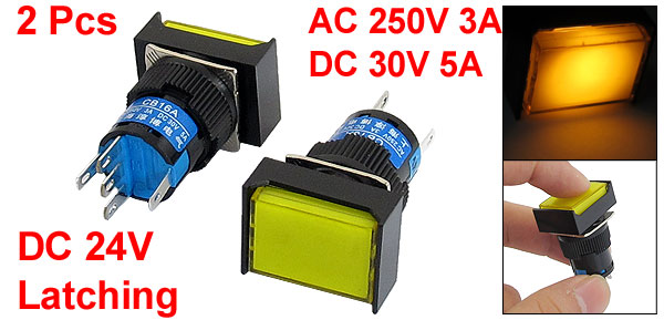 2Pcs DC 24V Lamp 5 Terminals Yellow Rectangle Latching Push Button Switch