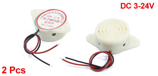 Product Name Active Electronic Alarm Buzzer Model SFM-27 Working Voltage DC 3-24V Body Size 30 x 15mm / 1.2" x 0.6" (D*T) Cable Length 10cm / 3.9" External Material Plastic Color White Weight 16g Package Content 2 x Active Electronic Alarm Buzzer