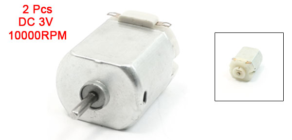 Product Name Toy Motor Rated Voltage DC 3V Rated Speed 10000 RPM Shaft Size 8 x 1.5mm/0.3'' x 0.06''(L*D) Motor Body Length 27mm/ 1.06" Motor Body Diameter 20mm/ 0.8" Material Metal, Electronic Parts Color Silver Tone Weight 31g Package Content 1 x Toy Motor - Reviews