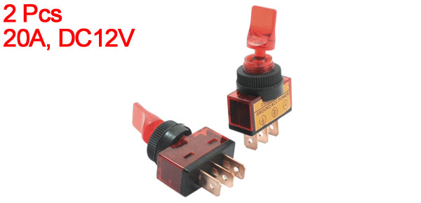 2Pcs DC12V 20A SPST Red Lamp 12mm Mounting Thread Dia Toggle Switch