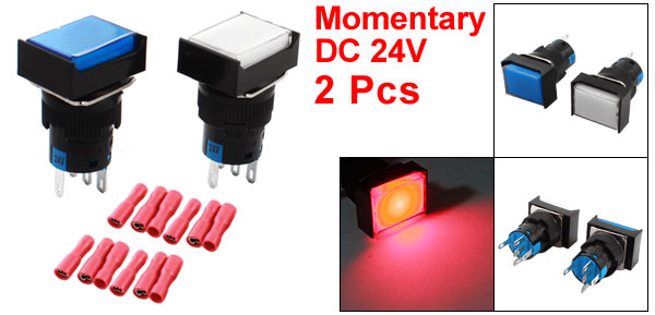 2Pcs DC24V Light SPDT Momentary Rectangle Pushbutton Switch w Crimp Connectors