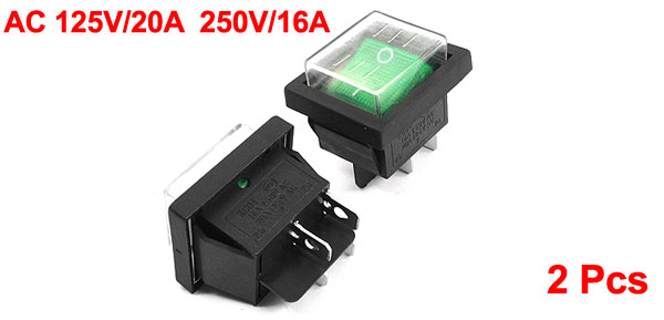 Product Name Waterproof Rocker Switch Connection Type DPST Position On-Off Terminals Number 4 Voltage/Current AC 125V/20A 250V/16A Total Size(Each) 35 x 29 x 36mm/ 1.4" x 1.1" x 1.4"(L*W*H) Mounted Size 29 x 21mm/ 1.1" x 0.83"(L*W) Switch Color Black, Green Button Color Green Material Plastic, Metal Weight 30g Package Content 2 x Waterproof Rocker Switches - Reviews
