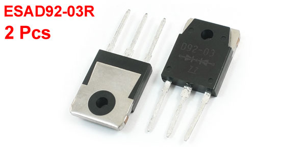 Product Name Fast Recovery Diode Type ESAD92-03R Common Cathode Mounting Type Through Hole IO 20A VRRM 300V IFFSM 80A VF 1.2V trr 0.04s Mounting Hole Diameter 3.6mm/0.14" Pin Size 14 x 2mm/0.56" x 0.08" ( L* W) Total Size 33 x 15 x 5mm/1.3" x 0.59" x 0.20" (L*W*T) Material Plastic, Electronic Parts Weight 11g Package 2 x Fast Recovery Diode - Reviews