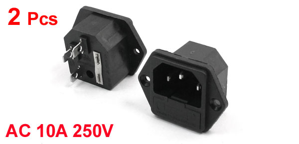 Product Name Male Power Plug Power Supply AC 10A 250V Inlet Plug Type IEC320 C14 Terminals Number 3 Total Size(Approx) 4.5 x 3.2 x 2.1cm / 1.8" x 1.2" x 0.8"(L*W*T) Fit for Fuse Size 24 x 5mm / 0.94" x 0.19"(L*D) Mouting Hole Dia 3mm/0.12" Mouting Hole Distance 35mm / 1.4" Material Plastic,Electronic Parts Color Black Weight 35g Package Content 2 x Male Power Plug - Reviews