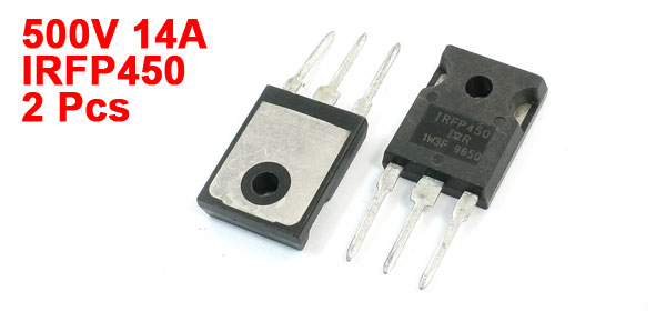 Product Name N Channel Transistor Model IRFP450 Package TO-247 VDS 500V ID 14A Body Dimension 20 x 15 x 5mm/ 0.78" x 0.59" x 0.2" (L*W*T) Hole Dia 3mm/0.12" Weight 7g Package Content 2 x N Channel Transistor - Reviews