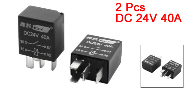 Product Name Relay Coil Rating DC 24V 40A Contact Materia Metal Type SPST, 1NO Pin Quantities 4 Overall Size (Pins not Included ) 25 x 23 x 16mm/1" x 0.9" x 0.63"(L*W*H) Shell Material Plastic Net Weight 42g Package Content 2 x Relay - Reviews