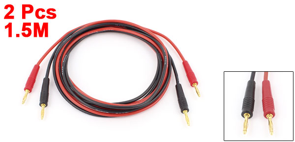 2pcs Gold Plated 2mm to 2mm Banana Plug Test Charging Leads 1.5M 18AWG