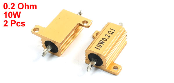Product Name Aluminum Resistor Resistance Value 0.2 Ohm Power Rating 10W Mounting Hole Dia 20mm/0.8" Mount Hole to Hole Distance 22mm/0.87" Connect Hole Dia 1.5mm/0.06" Connect Hole to Hole Distance 27mm/1.1" Plate Size 31 x 21mm/1.1" x 0.83"(L*W) Body Size 18 x 11 x 10mm/ 0.71" x 0.43" x 0.4"(L*W*T) External Material Aluminum Color Gold Tone Net Weight 11g Package Content 2 Pcs x Aluminum Resistor - Reviews