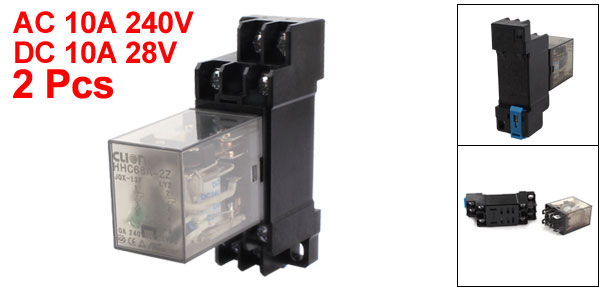 Brand DMiotech Net Weight 130g Mount Rail Type 35mm DIN Rail Country of Manufacture CHINA Package Content 2 x Electromagnetic Relay w Socket Contact Capacity AC 10A 240V / DC 10A 28V Light Color Green Type DPDT Material Metal, Plastic Coil Voltage DC 24V Total Size 70 x 23 x 64mm/2.8" x 0.9" x 2.6"(L*W*T) - Reviews