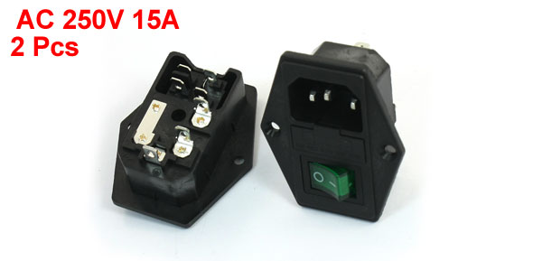 Product Name Power Socket Plug Type IEC320 C14 Voltage & Current 15A 250V AC Light Color Green Rocker Switch Type 4Pin DPST Fit Fuse Size 5 x 20mm/ 0.2" x 0.79" (L*W) Total Socket Size 5.8 x 4.8 x 3.3cm/2.3" x 1.9" x 1.3"(L*W*T) Mount Size 4.8 x 2.7cm/1.9" x 1"(L*W) Material (External) Plastic, Metal Main Color Silver Tone, Black Weight 52g Package Content 2 x Power Socket w Fuse Holder w Rocker Switch