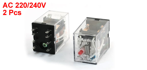 Product Name Electromagnetic Relay Model No. HH52P Coil Voltage AC 220/240V Contact Capacity 5A 250VAC /5A 30VDC Type DPDT, 2NO 2NC Indicator Light Color Red Pin Quantities 8 Pin Size 6 x 2.6mm/0.24" x 0.1"(L*W) Overall Size (Approx.) 27 x 20 x 35mm/1.1" x 0.8" x 1.4"(L*W*H) Shell Material Plastic Main Color Clear, Black Net Weight 60g Package Content 2 x Electromagnetic Relay - Reviews