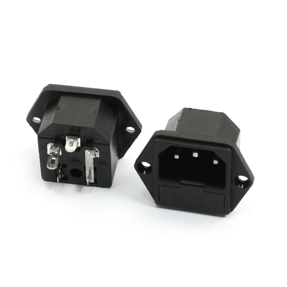 2pcs IEC 320 3 Pin C14 Inlet Plug Socket AC 250V 10A w 5mm x 20mm Fuse Holder