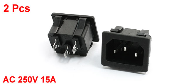 2pcs IEC 320 3 Pin C14 Male Inlet Plug Socket Adapter AC 250V 15A