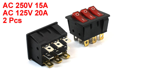 Product Name Rocker Switch Action SPST Terminals 9 Pin (ON-OFF) Light Color Red Rating Voltage 15A 250VAC 20A 125VAC Total Size 4 x 3.3 x 3.8cm/1.6" x 1.3" x 1.5"(L* W *T) Mounting Dimension 35 x 30mm/1.4" x 1.2"(L*W) Color Black, Silver Tone Material Plastic & Metal Total Weight 49g Package Content 2 x Rocker Switches - Reviews