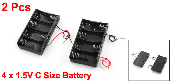 Main Color Black Fit for 4 x 1.5V C Size Battery(Not Included The Battery) Net Weight 52g Country of Manufacture CHINA Package Content 2Pcs x Battery Holder Material Plastic, Metal Total Size 103.5 x 58 x 22mm/4" x 2.3" x 0.87"(L*W*H) Wire Length 14.5mm/5.7" Battery Connect Type In Series - Reviews