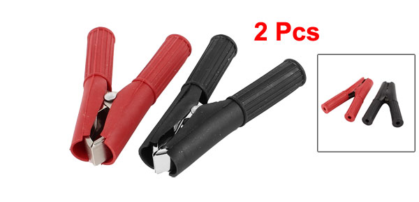 2PCS Insulated Plastic Coated Car Battery Alligator Clip Red Black