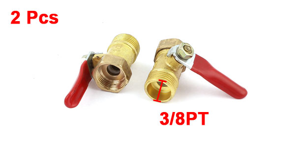 Product Name Ball Valve Female Thread Dia 16mm/ 0.63" Male Thread Dia 16mm/ 0.63" Thread Size 3/8PT Level Handle Size 47 x 12 x 5mm/1.9" x 0.47" x 0.2" (L*W*T) Total Size(Excluded Handle) 33 x 18mm/ 1.3" x 0.71" (L*D) Color Brass Tone, Red Material Solid Brass Weight 71g Package 2 x Ball Valve - Reviews