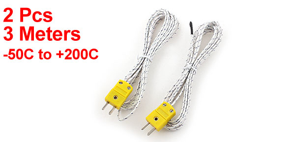 2Pcs K-Type Temperature Control Thermocouple Sensor Wire -50C to +200C 10ft