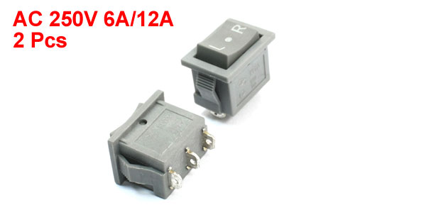 2pcs KCD3 AC 250V 6A/12A Latching SPDT 3-Position Rocker Switch Gray