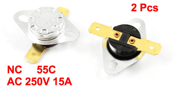 2Pcs KSD301 2 Terminal 55C Temperature Control Switch Thermostat AC 250V 15A