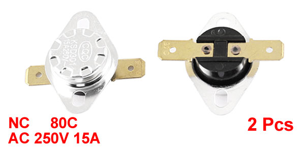 2Pcs KSD301 2 Terminal 80C Temperature Control Switch Thermostat AC 250V 15A