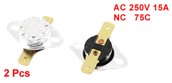 2Pcs KSD301 2P Terminal 75C Temperature Control Switch Thermostat AC 250V 15A