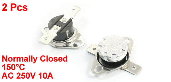 Product Name Temperature Control Switch Model.No KSD301 Action Type Normally Closed(NC) Action Temperature 150°C Voltage & Current AC 250V, 10A Total Size (Each) 34 x 18 x 12mm / 1.3" x 0.71" x 0.47"(L*W*H) Mounting Hole Size 4.5 x 3.5mm/0.18" x 0.14"(L*W) Material Metal, Plastic Color Black, Silver Tone Total Weight 10g Package Content 2 x Temperature Control Switches - Reviews
