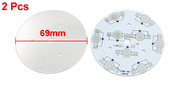 2pcs LED Light Aluminum PCB Circuit Board 69mm for 9 x 1W/3W/5W LEDs in Series
