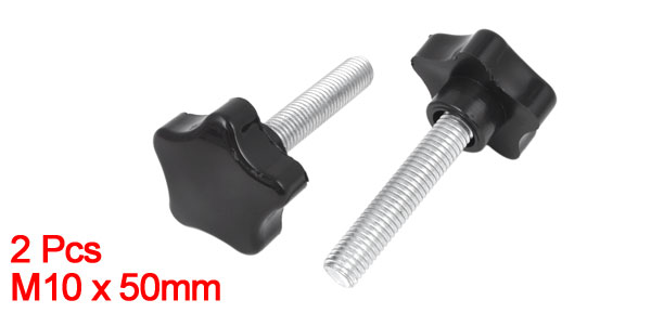 Product Name Star Knob Type Screw On Head Diameter 38mm / 1.5" Thread Length 50mm / 2" Thread Diameter 10mm / 0.39" Total Height 72mm / 2.8" Material Metal & Plastic Color Silver Tone & Black Net Weight 86g Package Content 2 x Star Knobs - Reviews