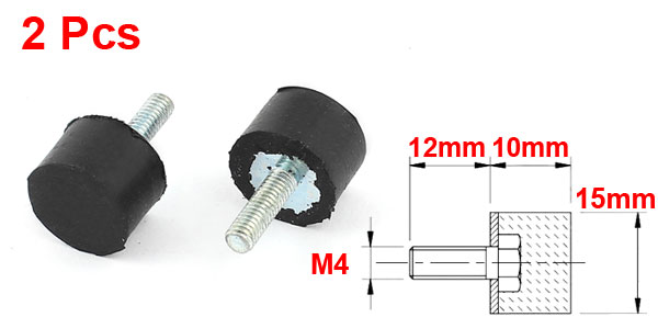 2pcs M4 x 12mm Male Thread Rubber Shock Absorber Vibration Isolator Mounts