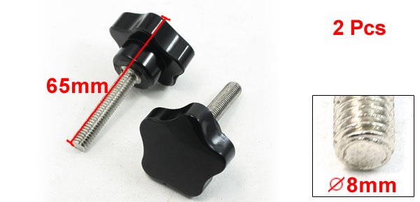Product Name Clamping Screw Knob Type Screw On Head Diameter 36mm / 1.4" Thread Length 40mm /1.6" Thread Diameter 8mm / 0.3" Total Height 65mm /2.6" Material Metal, Plastic Color Silver Tone, Black Weight 79g Package Content 1 x Clamping Screw Knob - Reviews