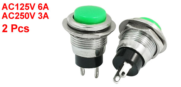 2pcs Momentary 12mm Mounting SPST Green Button Switch AC125V 6A 250V 3A