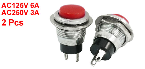 2pcs Momentary 12mm Panel Cutout Dia Button Switch AC125V 6A 250V 3A