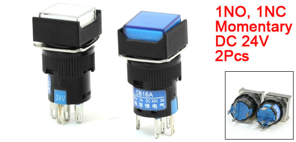 2Pcs NO NC White Blue Lamp Square Momentary Push Button Switch DC 24V