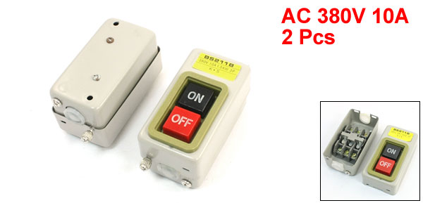 2pcs NO/OFF 3Phase Self Locking Power Button Switch 380VAC 10A BS-211B