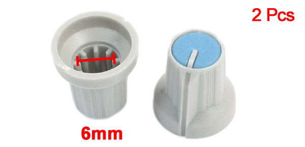 Product Name Potentiometer Knob Material Plastic Color Black, Blue Shaft Hole Dia. 6mm/ 0.24" Overall Size 13 x 15mm/ 0.5" x 0.6"(D*H) Weight 2g Package Included 2 x Potentiometer Knob - Reviews