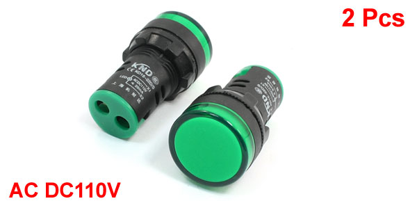 Product Name LED Indicator Pilot Light Model No. KD16/22D/S Voltage & Current AC DC110V, 20mA Pin Number 2 Material Plastic, Electric Components Light Color Green Mount Hole Diameter 22mm/ 0.87" Size 28 x 51mm/ 1.1" x 2"(D*H) Weight 35g PakcageContent 2 x LED Indicator Pilot Lights - Reviews