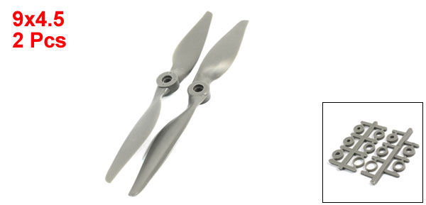 Details2Pcs Plastic RC Model Airplane Engine Two Blade Motor Prop Propeller 9x4.5  Product Name RC Airplane Propeller Blade Number 2 Model APC Style 9x4.5(Non-OEM) Motor Shaft Hole Dia 7mm / 0.27", 10mm/ 0.39"(Contrary) Total Length(Rotating Diameter) 229mm / 9" Pitch 114.3mm / 4.5" Max Thickness 12mm / 0.47" Shaft Size Adapter Ring Inner Dia Biggest: 8mm/0.32" Smallest: 4mm/0.16" Material Plastic Color Gray Weight 38g Package Content 2 x Propeller 12 x Shaft Size Adapter Rings