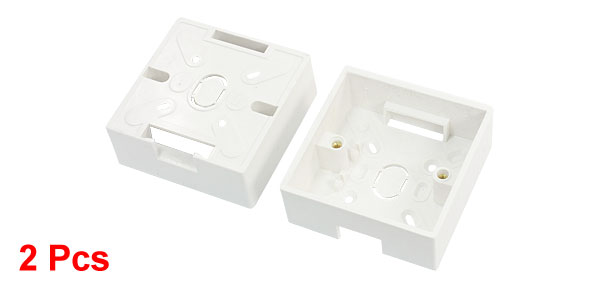 Product Name Junction Box Mounted Type Flush Mount Wire Hole 2.5 x 1.4cm/1" x 0.55"(L*W) Thread Hole Diameter 5mm/ 0.2" Thread Hole Center Distance 60mm/ 2.4" Total Size 86 x 86 x 35mm/3.4" x 3.4" x 1.4"(L*W*H) Rectangle Mounted Size 8 x 3 x 55mm/0.31" x 0.12" x 2.2"(L*W*Distance) Material PVC Color Ivory Net Weight 90g Package 2 x Junction Box - Reviews