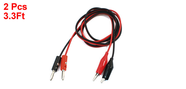 2Pcs Red Black Banana Plug to Alligator Clips Probe Test Cable 1M 3.3Ft